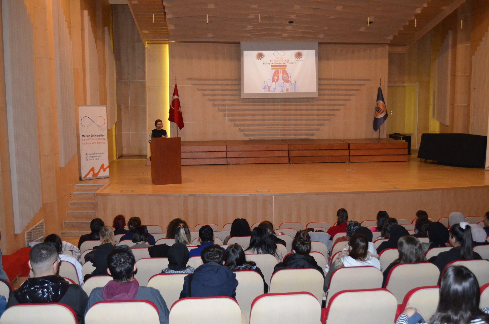 Üniversitemiz Sürekli Eğitim Uygulama ve Araştırma Merkezi (MEÜSEM), Kariyer Merkezi ve Sağlık Hizmetleri Meslek Yüksekokulu iş birliğinde Prof. Dr. Gönül Aslan ve Öğr. Gör. Leyla Ersoy tarafından “Tüberküloz Bulaş ve Korunma Yolları” konulu konferans düzenledi.