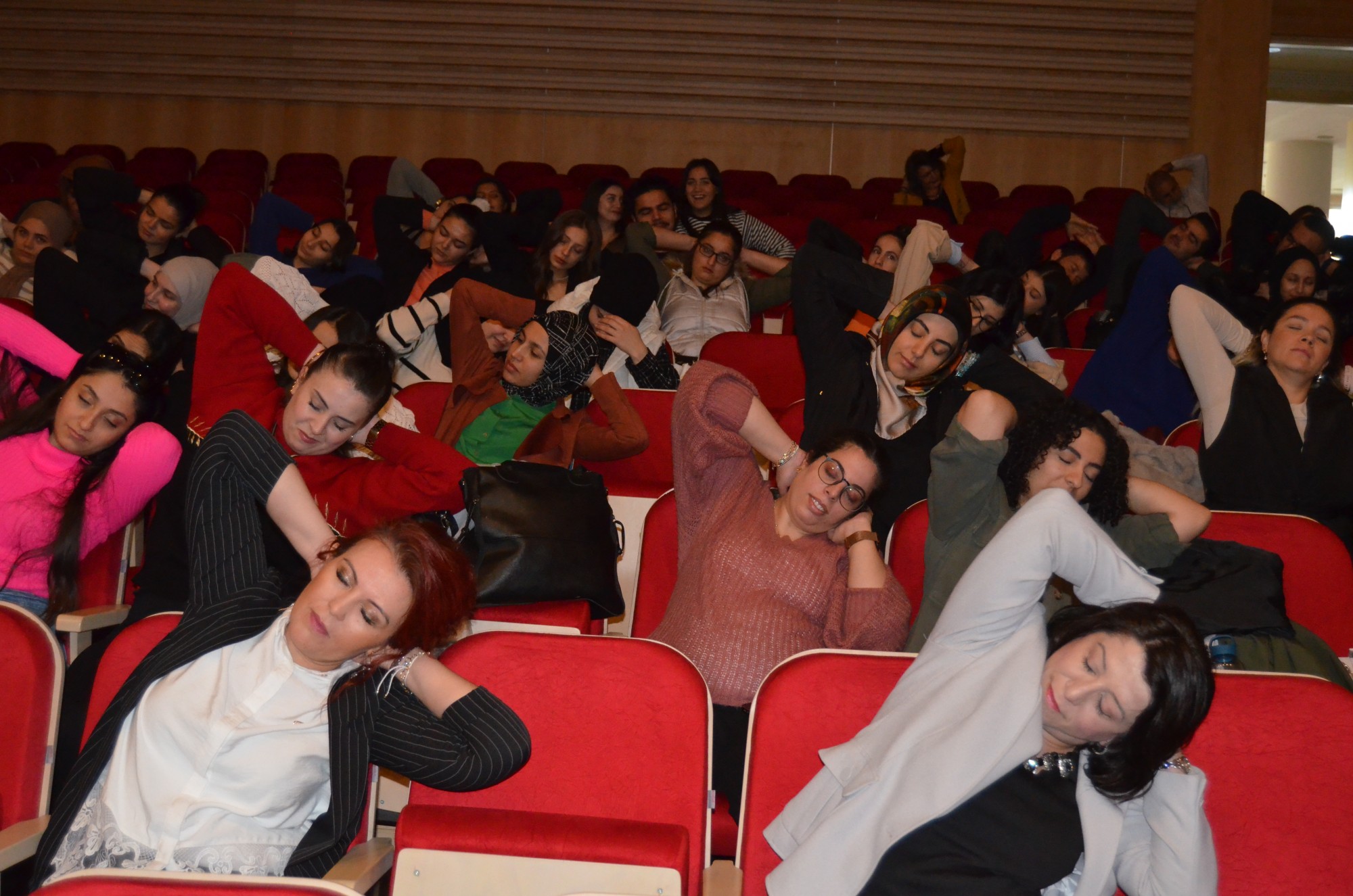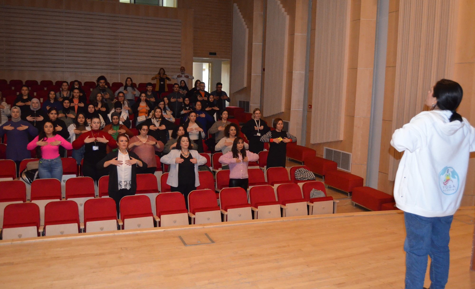 Açış konuşmasının ardından Tıp Fakültesi Tıbbi Mikrobiyoloji Anabilim Dalı öğretim görevlimiz Leyla Ersoy tarafından “Tüberküloz Bulaş ve Korunma Yolları” ile ilgili bir sunum gerçekleştirdi. Daha sonrasında Üniversitemiz akademisyenlerinden Öğr. Gör. Sema İsmi Utandı tarafından “Orijinal Yoga Sistemi” nefes tekniği ile uygulamalı egzersizler yapılarak, doğru nefes alma ve verme farkındalığı oluşması sağlandı.