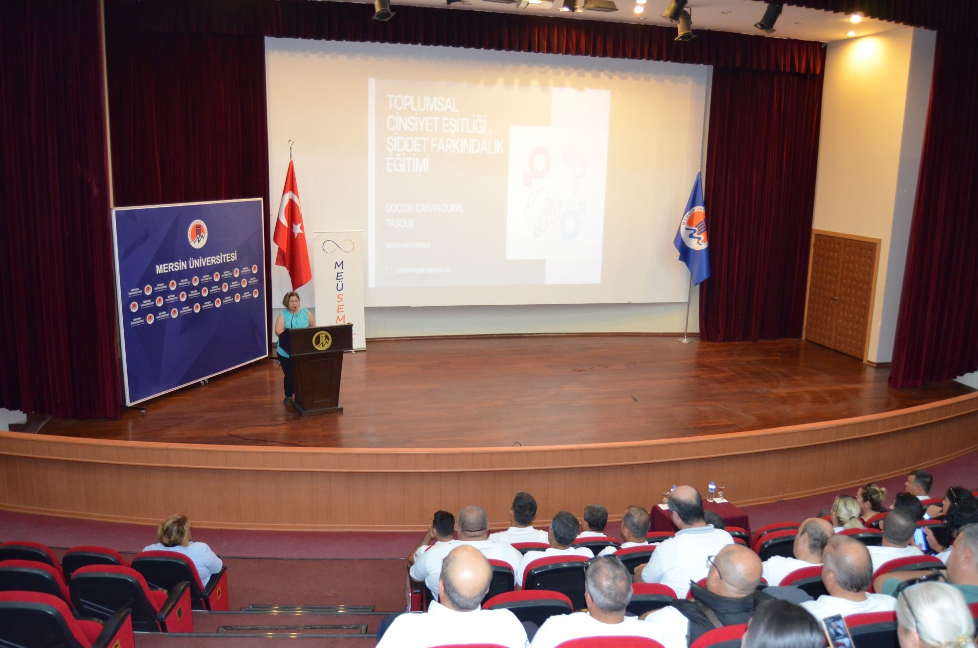 Prof. Dr. Uğur Oral Kültür Merkezi’nde 20 Mayıs 2024 Pazartesi günü Ulaşım Daire Başkanlığına bağlı 200 personelin katılımıyla gerçekleşen ilk eğitimde, Doç. Dr. Canan Dural Tasouji,Toplumsal Cinsiyet Eşitliği ve Şiddet Farkındalık Eğitimi’ konulu eğitimi vermiştir.