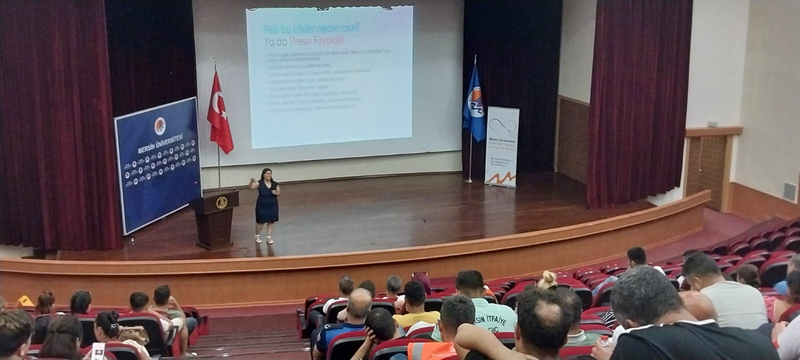 17 Temmuz 2024 Çarşamba günü Mersin Büyükşehir Belediye Personeline, Üniversitemiz Eğitim Fakültesi Rehberlik ve Psikolojik Danışmanlık Anabilim Dalı Öğretim Üyesi Doç. Dr. Binaz Bozkır tarafından Üniversitemiz Prof. Dr. Uğur Oral Kültür Merkezi A Salonunda “Toplumsal Cinsiyet Eşitliği Perspektifinde, Stres Nedir? Kaynakları Nelerdir? İyi ve Kötü Stres, Örgütsel Stres Yönetimi, Stres Belirtileri, Stresin Bedendeki Belirtilerini Kontrol Edebilme Yolları, Sık ve Uzun Yaşanan Stresin Beden Zihin ve Duygularımız Üzerindeki Etkileri, Stresin İş Hayatına ve İletişim Üzerine Etkisi, Stresi Yönetmek, Stresli Durumları Analiz Etme” konularında eğitim verildi. 4 saat süren eğitimin sonrasında katılımcıların sorularının cevaplanması ile eğitim tamamlandı.