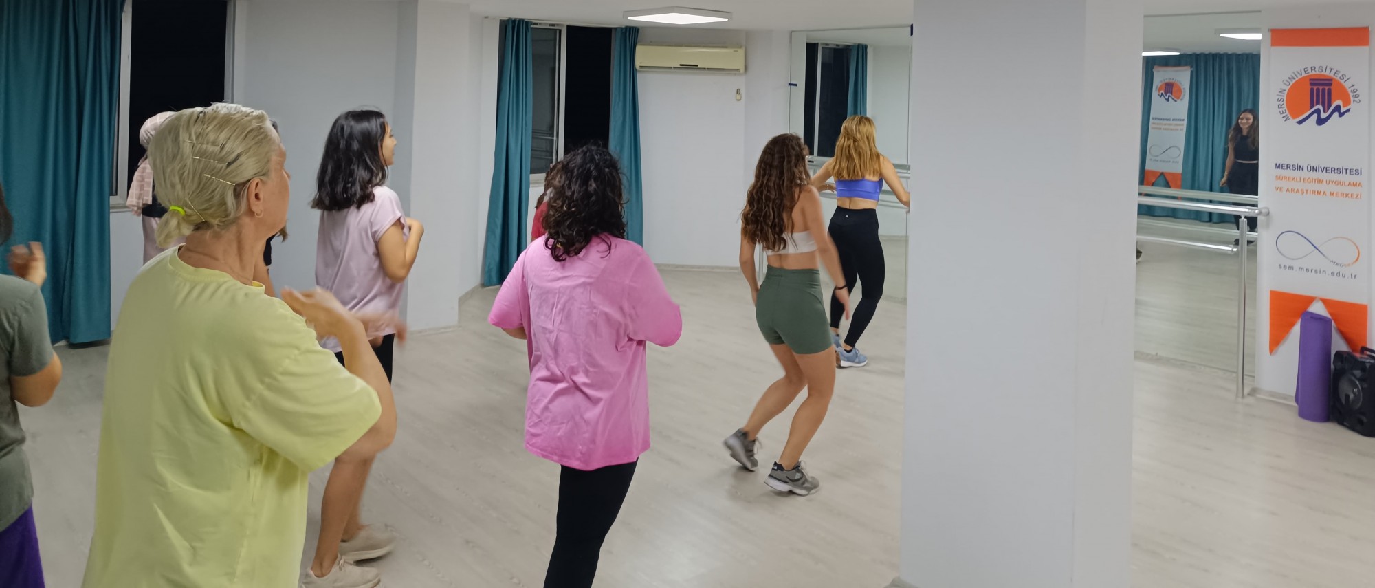 Mersin Üniversitesi Sürekli Eğitim Uygulama ve Araştırma Merkezi (MEÜSEM)de ZUMBA eğitimleri devam ediyor. Yoğun talep üzerinde 15 Ekim 2024 Salı günü "ZUMBA" dersleri tekrar başladı. 15 Ekim-12 Kasım 2024 tarihleri arasında Pınar Eldemir tarafından Salı ve Perşembe günleri "ZUMBA" dersleri verilmektedir. Eğitim sonunda katılımcılara e katılım belgesi düzenlenecektir.