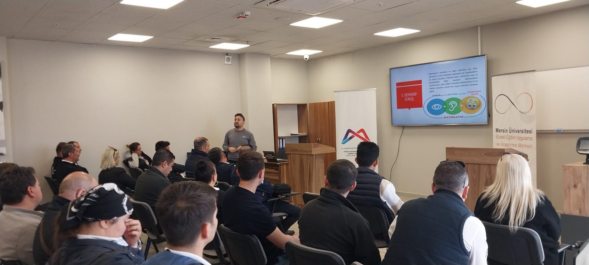 Merkezimiz ile Mersin Büyükşehir Belediyesi İnsan Kaynakları Eğitim Şube Müdürlüğü iş birliğinde, Ulaştırma Daire Başkanlığı bünyesinde görev yapmakta olan şoförlere yönelik ‘İleri Sürüş Teknikleri Eğitimi’ veriliyor. Üniversitemiz Mühendislik Fakültesi Öğretim Üyesi Doç. Dr. İlker Sugözü tarafından 09.04.2025 çarşamba günü başlayan teorik dersler üç farklı grup halinde verilmiş olup, uygulamalı eğitimler 24.04.2025 tarihine kadar devam edecektir. Teorik ve uygulama eğitimin ardından belge almayı hak eden katılımcılara katılım belgesi verilecektir.