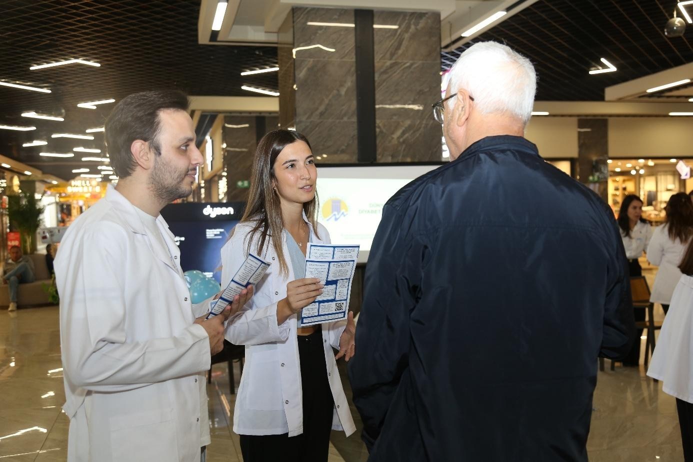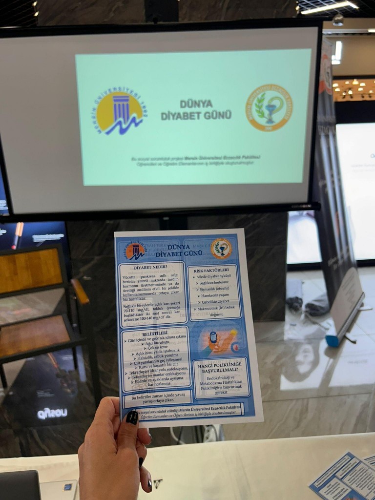 Fakültemiz öğrencileri Sayapark Alışveriş Merkezinde standımızı ziyaret eden bireyleri diyabet risk faktörleri, belirtileri, türleri, diyabetle yaşam ve tedavisi hakkında bilgilendirerek broşür dağıttı.