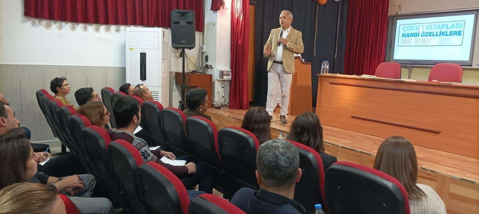 Prof. Dr. Taşkaya, sunumunda iyi bir çocuk kitabında bulunması ve bulunmaması gereken özellikleri, kitap örnekleri üzerinden öğretmenlere aktardı. Program, soru-cevap bölümüyle sona erdi.
