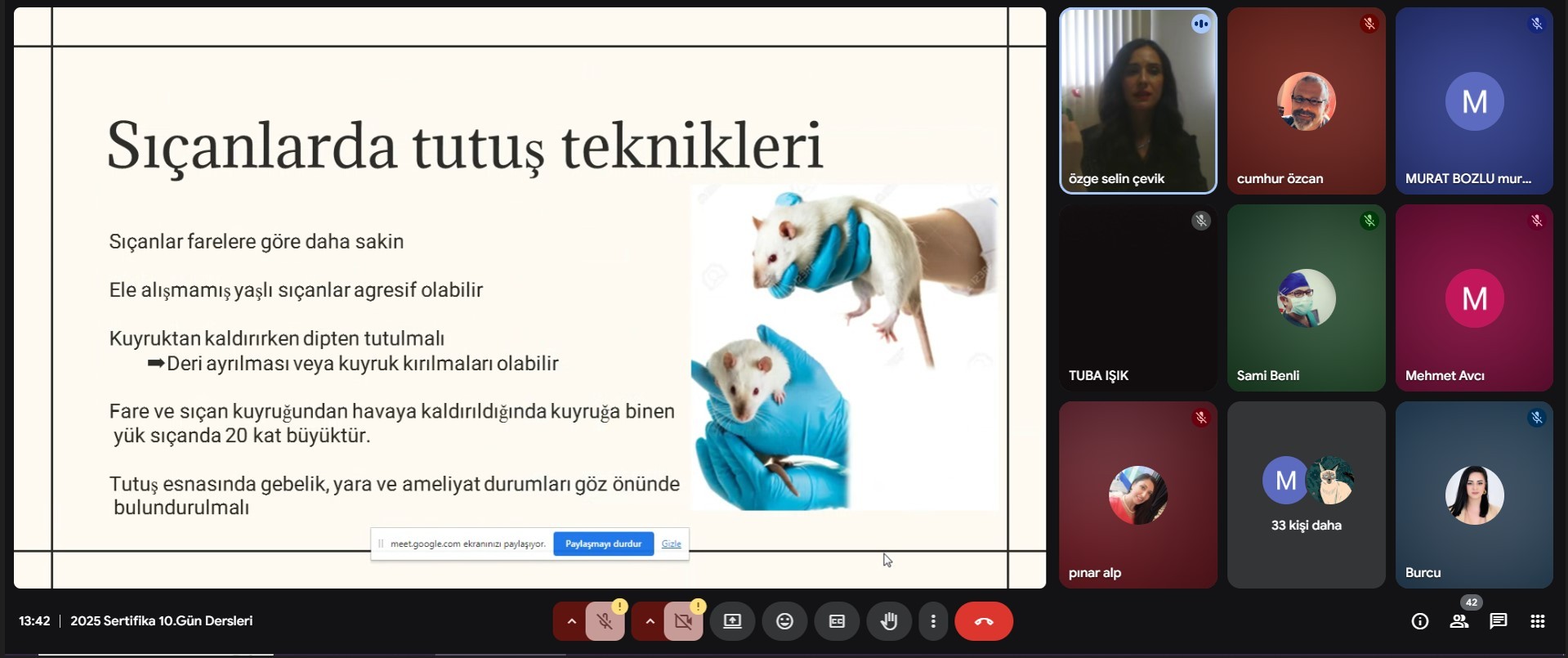 10 Kasım 2025 tarihinde başlayan eğitimin, teorik dersleri 10-21 Kasım 2025 tarihleri arasında 40 saat, uygulama dersleri 24-26 Kasım 2025 tarihleri arasında 35 saat olarak akademisyenler tarafından verildi. MEÜSEM dersliklerinde eğitim sonu değerlendirme sınavı yapıldı. Eğitim sonunda teorik ve uygulama dersi koşullarını sağlayan katılımcılara A Kategori Deney Hayvanı Kullanım Sertifikaları düzenlenecektir.