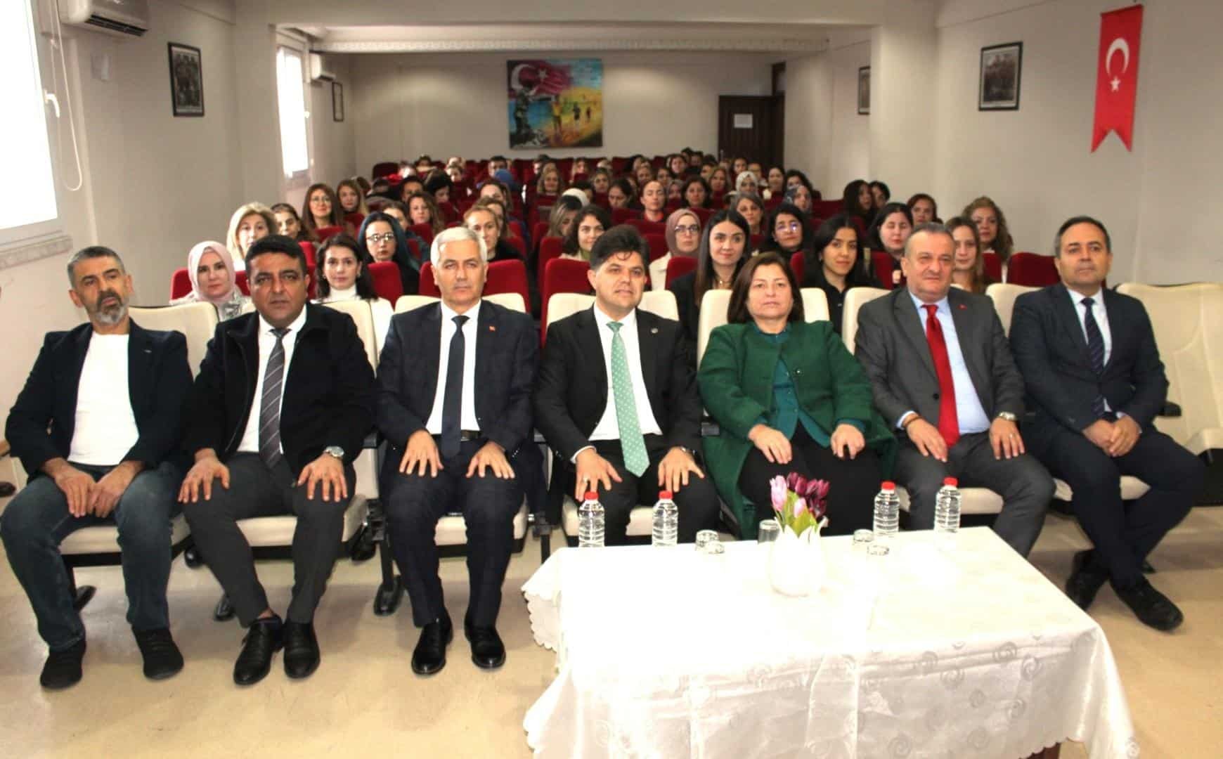 8 Aralık Pazartesi günü Prof. Dr. Emine Yılmaz Bolat tarafından gerçekleştirilen “Okul Öncesi Eğitimde Maarif Modeli Uygulamaları” konulu söyleşi, Pakize Kokulu Anadolu Lisesinde düzenlendi. Söyleşiye İl Millî Eğitim Müdürü Muhammed Özdemirci, Mezitli İlçe Millî Eğitim Müdürü Mehmet Badas, İl Millî Eğitim Müdür Yardımcısı Fatih Burğut, Mezitli İlçe Millî Eğitim Şube Müdürü Çetin Çınğı ile Mezitli İlçe Millî Eğitim Müdürlüğüne bağlı okullarda görev yapan öğretmenler ve yöneticiler katıldı.