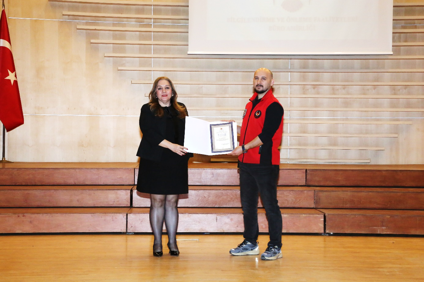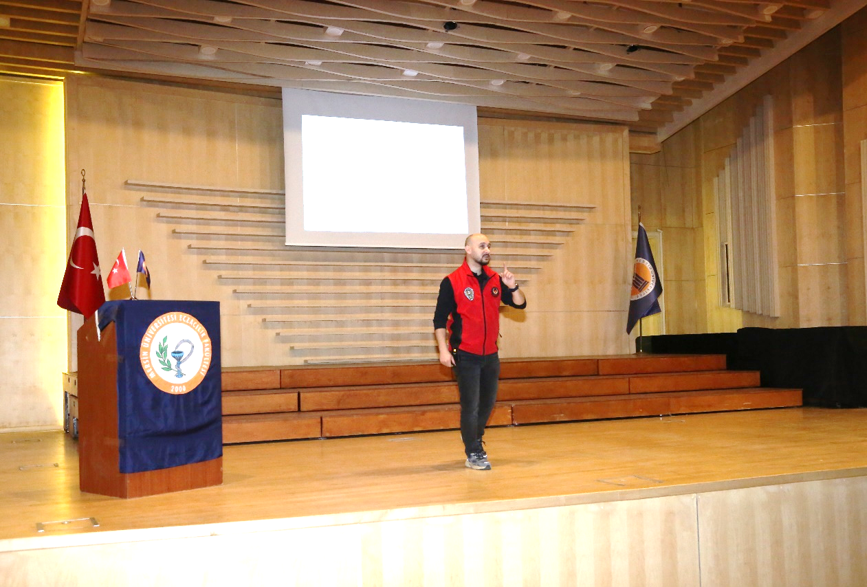 Öğrencilerimizin ilgiyle takip ettiği konferans, Fakültemiz Dekanı Prof. Dr. Necmiye CANACANKATAN’ın Polis Memuru Bahadır ŞENBAYRAK’ya teşekkür belgesi takdim etmesinin ardından toplu fotoğraf çekimi ile sona erdi.