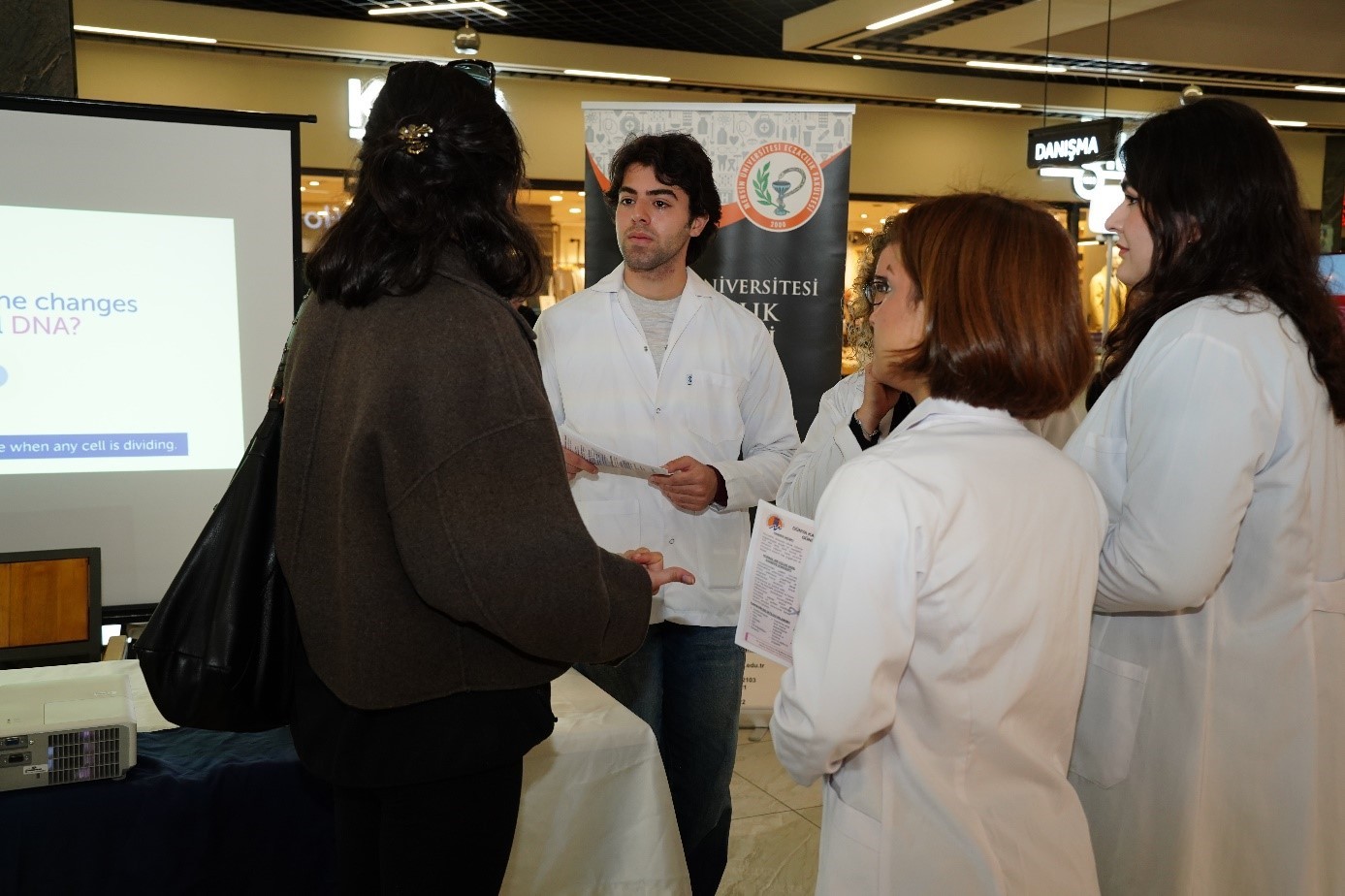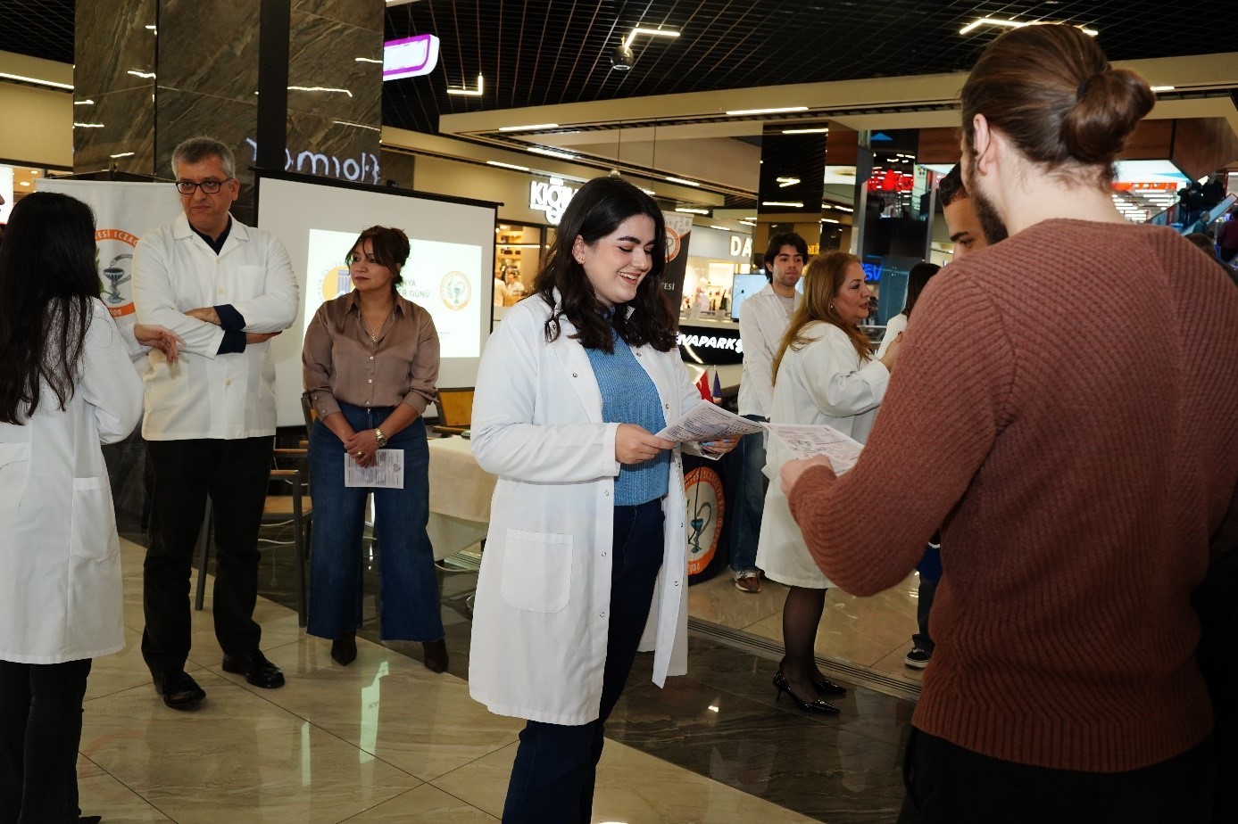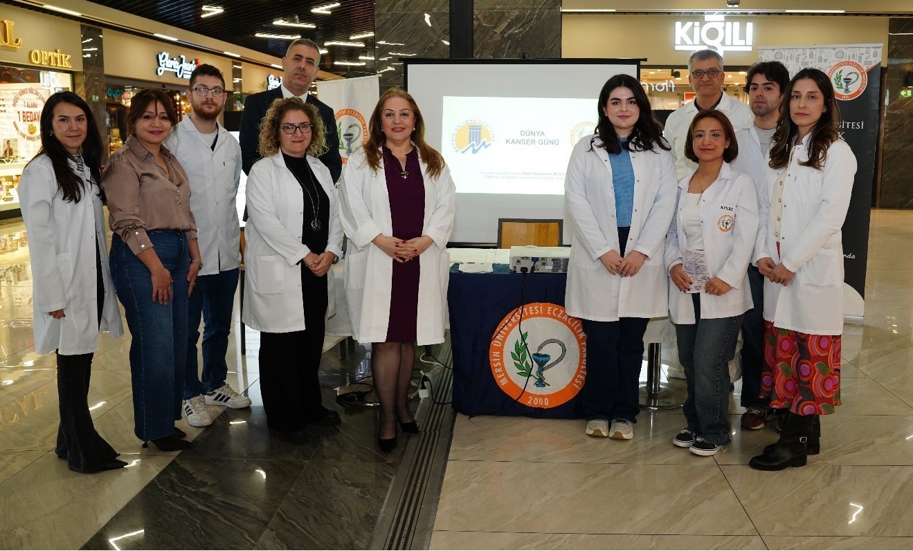 Fakültemiz Sosyal Sorumluluk ve Projeler Komisyonu tarafından 11 Şubat 2026 tarihinde “4 Şubat Dünya Kanser Günü” farkındalık etkinliği gerçekleştirildi. Etkinliğe, Fakültemiz Dekanı Prof. Dr. Necmiye CANACANKATAN, Dekan Yrd. ları Doç. Dr. Mahmut ÜLGER, Dr. Öğr. Üyesi Ş. Efsun ANTMEN, Fakülte Sekreterimiz Volkan DARÇIN, Fakültemiz öğretim elemanları, ve öğrencileri katıldı. Etkinlik kapsamında, Fakültemiz Sosyal Sorumluluk ve Projeler Komisyonu ve öğrencileri Sayapark Alışveriş Merkezinde standımızı ziyaret eden bireyleri kanser türleri, belirtileri, risk faktörleri, korunma yolları, erken tanının önemi ve tedavisi hakkında bilgilendirerek broşür dağıttı. Gerçekleştirilen bu etkinlikte “4 Şubat Dünya Kanser Günü” kapsamında kanser hastalığa dikkat çekilmiş ve farkındalık sağlanmış oldu.
