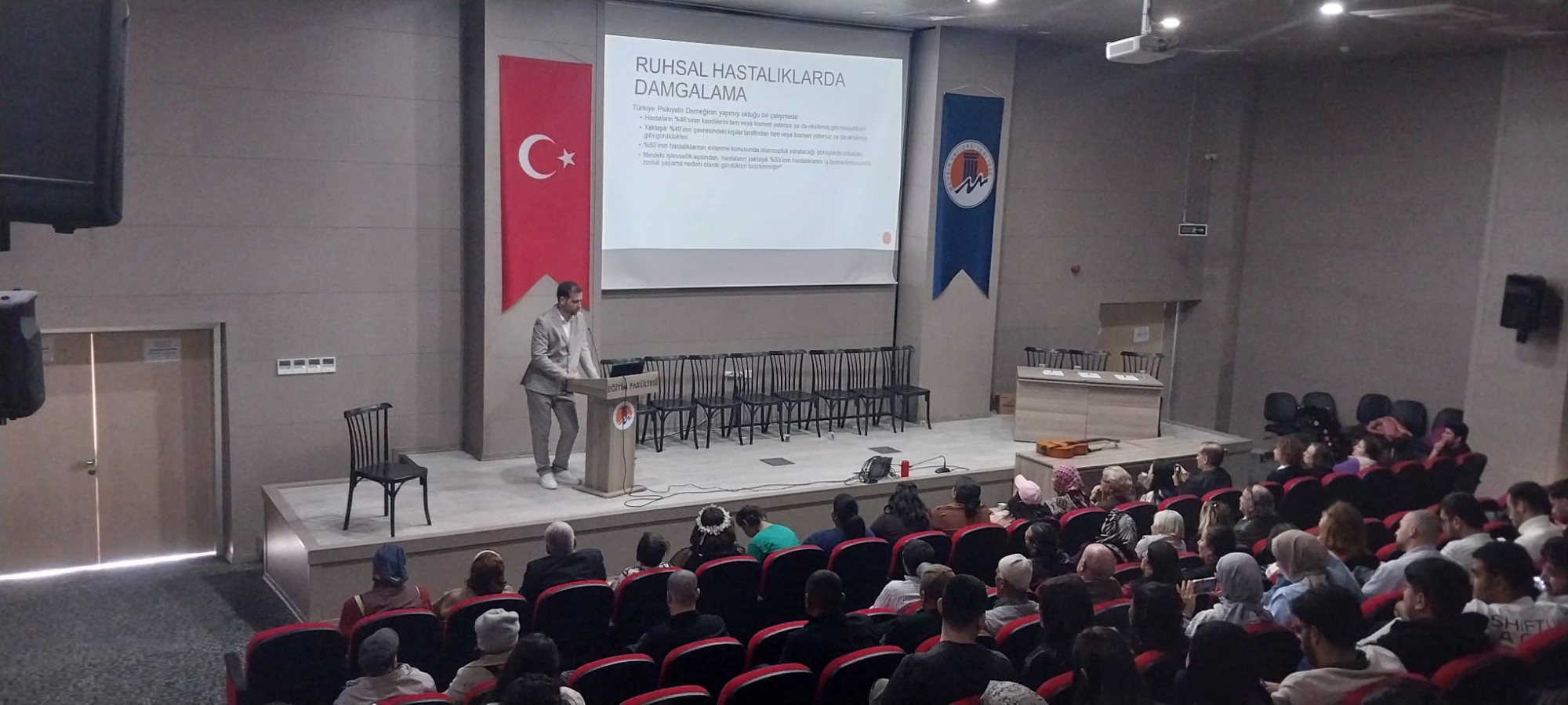 Eğitim Fakültesi’nde düzenlenen etkinliğin moderatörlüğünü Dr. Öğr. Üyesi Fatma Canan Durgungöz üstlendi. Programın ilk bölümünde Dr. Furkan Demirgil, "Ruh Hastalıklarında Damgalama" konulu bir seminer vererek; ruhsal rahatsızlık yaşayan bireylerin maruz kaldığı toplumsal etiketleme ve bunun iyileşme süreci üzerindeki olumsuz etkilerini dile getirdi.